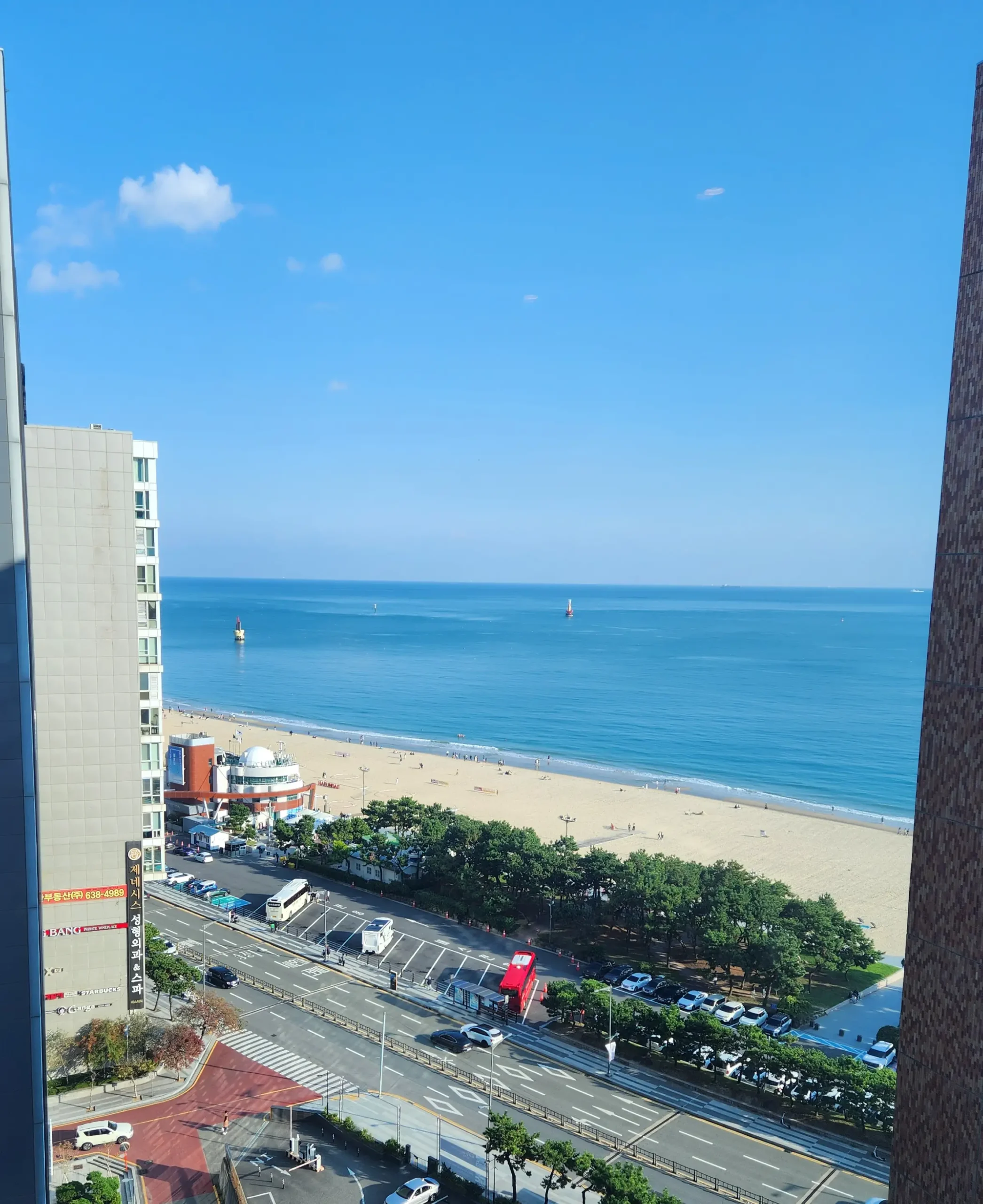 객실에서 내려다보는 해운대 바다뷰는 호텔의 가장 큰 강점이다.